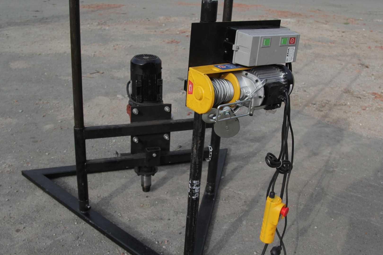 Глубина бурения с промывкой составляет до 70 м. Рабочее напряжение установки составляет 380 В. Поставляется с электрической лебедкой.